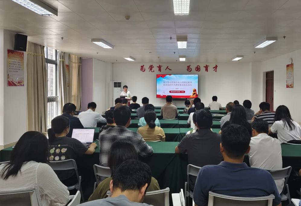 于峰从加强党的作风建设的重要意义、中央八项规定精神的核心要义、一以贯之将作风建设进行到底等三个方面,就深入学习贯彻中央八项规定精神,推进党的作风建设常态化长效化做了深入浅出的阐述。通过专题学习,全体党员深刻认识到党的作风就是党的形象,关系人心向背,关系党的生死存亡,纷纷表示将自觉把作风建设作为深入贯彻中央八项规定精神的重要抓手,将其融入日常工作,以实际扎实的作风建设推动学院事业高质量发展,为学校争创“双一流”提供坚实作风保障。