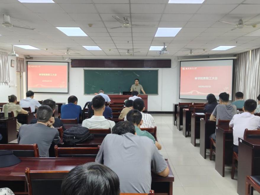 6月27日下午,林学院召开全体教职工大会,会议由学院党委副书记(主持工作)余坤勇主持,学院领导班子成员及全体教职工参加。