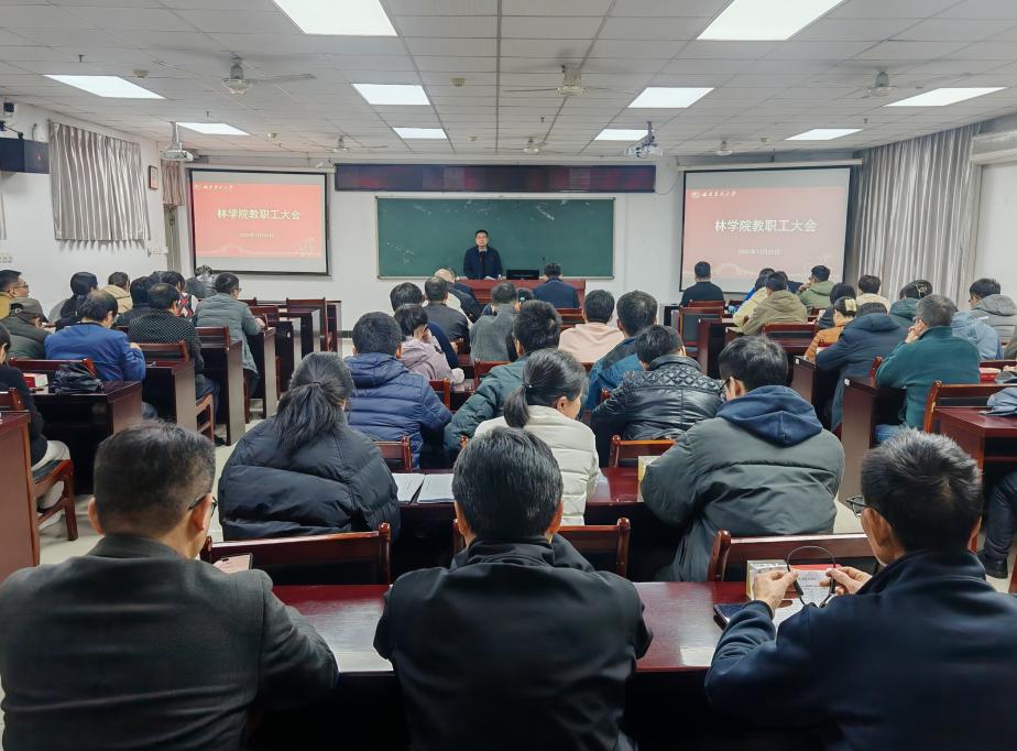 12月25日下午,林学院在田C215会议室召开期末全体教职工大会暨党员领导干部述责述廉会议。会议由学院党委副书记(主持工作)余坤勇主持,学院领导班子成员及全体教职工出席。