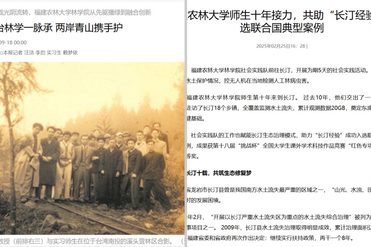 此外,学院参与承办的海峡两岸(福州)森林康养与环境教育高质量发展学术研讨会,获新华社、《光明日报》等多家主流媒体重点报道,其中《福建日报》以《闽台林学一脉承 两岸青山携手护》在海峡版头条刊发长篇深度通讯报道,引发参会人员热议和讨论。