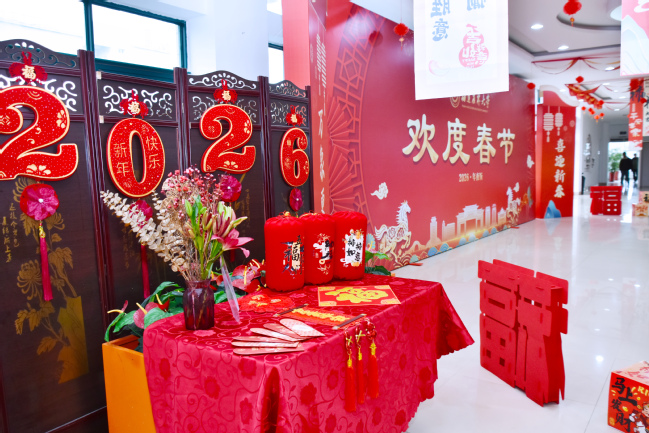 校领导走进师生中,亲切交谈、嘘寒问暖。“家乡在哪里?”“在学校过年习惯吗?学习和生活上有什么困难?”校领导关切地询问留校学生的近况,倾听大家的心声,细心叮嘱他们给家里打电话、报平安、送祝福,同时要珍惜假期时光,科学作息,劳逸结合。同学们纷纷向学校领导和老师们表达了新年的诚挚祝福和对学校的美好祝愿,感谢学校对寒假留校学生的关爱,让他们感受到了家一般的温暖。“新年快乐”留学生也用流利的中文送上真挚祝福,让年味里多了一份跨越国界的温馨。餐桌上,年夜饭琳琅满目、香气扑鼻,既有荤素搭配的传统菜肴,也融入了福州的特色美食。学校精心准备的年夜饭,让留校师生吃得放心、吃得开心、吃得暖心。