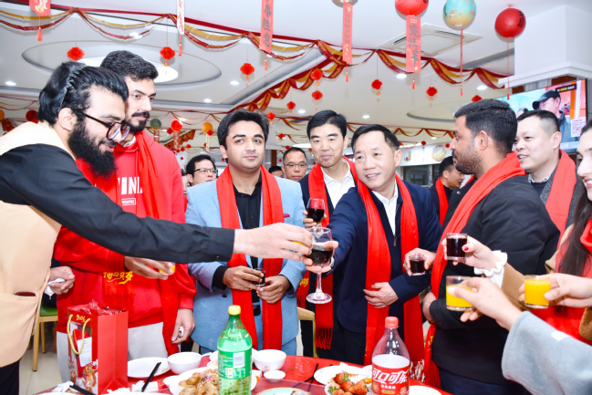 欢声笑语辞旧岁,温情相伴迎新春。多年来校领导与留校师生共度除夕已成为学校的传统,今年寒假共有192名学生留校,其中留学生110人。寒假期间,学校将全力做好后勤服务和相关保障工作,确保留校师生度过一个欢乐、祥和、喜庆的新春佳节。