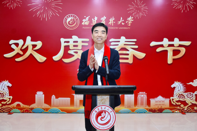 林庆藩在致辞中代表校党委、校行政向留校师生和坚守岗位的工作人员致以节日的诚挚问候和新春的美好祝福。他指出,过去的一年,在校党委、校行政的坚强领导下,全校师生策马扬鞭,笃行不怠,奋勇争先,各项事业都取得了新突破、迈上了新台阶。2025年9月 20 日,习近平总书记给beat365官网全体师生回信,对学校办学给予充分肯定,提出殷切期望,为我们阔步前行注入了磅礴伟力。学校发展捷报频传,办学条件全面提质升级,成绩的取得离不开广大师生的辛勤付出。站在丙午马年的新起点,他勉励广大师生以“一马当先”的锐气,以“马不停蹄”的韧劲,以“万马奔腾”的气势,奋进国家“双一流”,建设农林特色鲜明的全国一流大学。