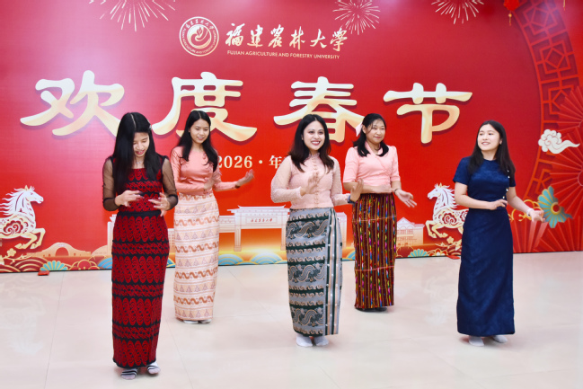 期间,多名中外学生主动登台献艺,或高歌或起舞。Victoria 深情演绎歌曲《Count on Me》,以悠扬的旋律传递了风雨同舟、守望相助的真挚情谊;郑筠熹与龚毅合唱了《春风十里报新年》,将新春的喜庆与美好祝福融入歌声;马睿妤的器乐独奏《世界赠予我的》,旋律婉转,尽显对生活的无限感恩;来自缅甸的 KHAING KAY THI HTUN 等留学生则带来舞蹈《永恒的承诺》,用灵动的舞姿诠释了跨越山海的友谊。现场气氛热烈高涨,祝福声与掌声交织回荡,处处洋溢着温馨和谐、其乐融融的节日氛围。
