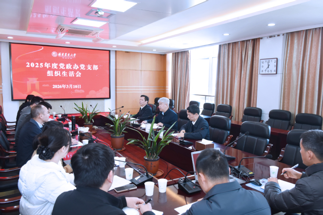 3月10日上午,校党委书记赖海榕以普通党员身份参加所在的党政办党支部2025年度组织生活会,与支部党员一起学习交流并认真开展批评与自我批评。机关党委督导组列席会议。