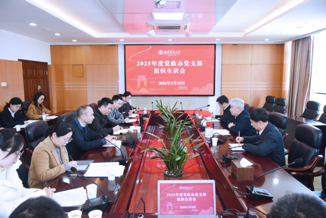 3月10日上午,校党委书记赖海榕以普通党员身份参加所在的党政办党支部2025年度组织生活会,与支部党员一起学习交流并认真开展批评与自我批评。机关党委督导组列席会议。