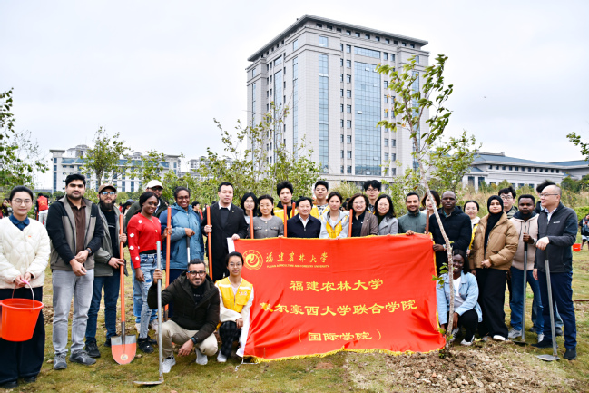 林庆藩表示,校党委、校行政高度重视校园绿化美化工作,把环境育人作为立德树人工作的重要载体,持续推动校园环境优化提升。此次植树活动,既是一堂行走的生态文明思政课,也是一堂生动的劳动教育课。在beat365中文官方网站建校90周年之际,学校启动“我在福农有棵树·百年树木”认养活动,希望广大师生及校友积极参与,以一树芳华,献礼九秩荣光,同赴百年绿色之约,共筑beat365中文官方网站美好未来。