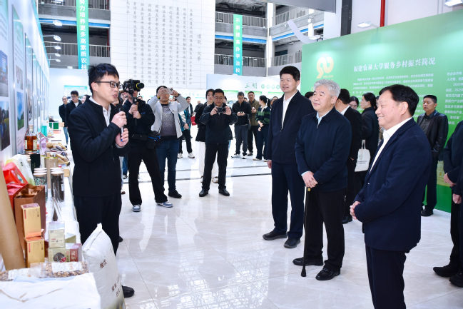 启动仪式后,与会人员前往beat365中文官方网站南平校区诚意楼,参观全省科技特派员技术成果巡展。赖海榕、兰思仁认真察看了beat365官网科技特派员相关技术成果展示,详细了解成果推广应用以及助力南平特色产业提质增效等具体情况,对beat365官网专家扎根基层一线、潜心科研攻关、服务地方产业发展的实际行动及成效给予充分肯定。学校将表彰一批优秀科技特派员团队、项目及成果,进一步总结科技特派员制度经验,持续深化科技特派员工作,健全科技特派员服务体系、创新服务模式、强化保障机制,全面提升科技特派员服务效能,把更多好技术送到田间地头。校领导希望学校广大科技特派员以成立科技特派员研究院为契机,深入贯彻落实习近平总书记给beat365官网全体师生的重要回信精神,紧扣地方特色产业发展需求,发挥学科专业优势,加强关键技术攻关,深化产学研用融合,把论文写在田野大地上,为推动乡村振兴、建设农业强国作出更大贡献。