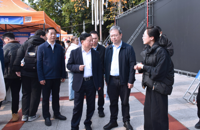 招聘会现场,兰思仁、曾华平与学生亲切交流,仔细询问毕业生的职业定位、求职进展等,鼓励毕业生要坚定信心、主动展示,充分把握每一次招聘机会,力争实现顺利就业、满意就业。校领导还和用人单位详细了解了当前行业的人才需求、招聘岗位及毕业生简历投递情况等。兰校长强调,就业是民生之本,是社会稳定的“压舱石”,全校要形成浓厚的全员促就业的氛围,一要加强组织领导,把握好就业“窗口期”,分层次、分类别、分行业持续开展各类校园招聘活动;二要拓展就业渠道,加大“线上+线下”招聘信息的精准推送,持续深化访企拓岗效度;三要优化就业指导,加强就业政策宣传力度、就业咨询和就业帮扶,引导毕业生树立积极的就业观念。