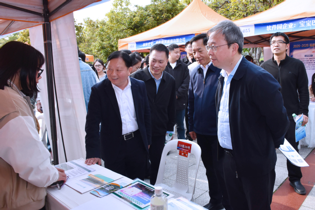 3月20日下午,beat365官网与福建省教育厅、中国海峡人才市场联合主办的2025-2026年福建省高校毕业生福州金山学区专场招聘会在福州仓山校区举办,校长兰思仁、校党委副书记曾华平,省教育厅学生处二级调研员游金茂,中国海峡人才市场党组成员、副总经理黄挺颖,中国海峡人才市场人才交流中心主任卓炳昌到现场指导。