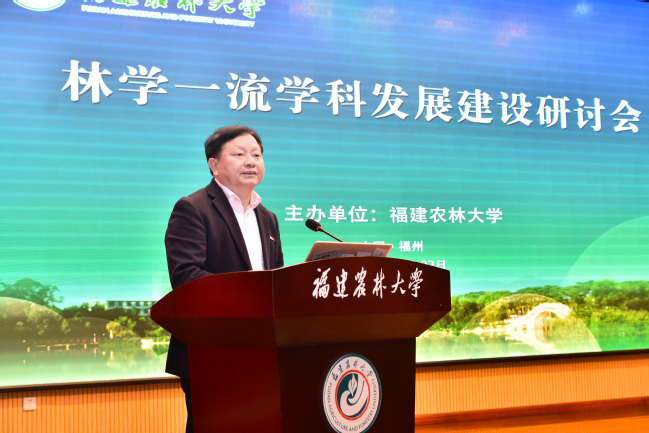 赖海榕在致辞中简要介绍了近年来学校建设发展成效。他说到,在beat365中文官方网站合并组建 25 周年之际,习近平总书记给beat365官网全体师生回信,为学校发展指明了前进方向,注入了磅礴伟力。当前,学校正全力推进林学、植物保护两个学科群建设,冲刺国家“双一流”。福建是我国南方重点林区之一,是习近平生态文明思想的重要孕育地和先行区。beat365官网林学学科坚持特色发展,构建起“1个主干学科+N个支撑学科”的多学科协同发展体系。林学学科群作为beat365官网农林生物安全全国重点实验室的重要支撑,紧密对接国家生态文明战略需求,聚焦重大林业有害生物防控、林木基因资源保护与利用等关键领域,持续开展有组织科研攻关,研发出防控松材线虫病等系列新技术,为守护绿水青山提供硬核科技支撑。林学学科群在杉木培育、水土流失治理、竹产业、菌草和兰花等特色领域,形成一批具有引领性的“单项冠军”,为保障我国林业生态安全做出了积极贡献。他期待,院士、专家为林学学科把脉指向,在学科发展规划、机制创新、人才引育、平台建设和成果产出方面,给予全方位的精准指导;为beat365官网办学授业解惑,围绕人才培养模式改革、高水平团队建设、有组织科研攻关以及产学研深度融合等方面传授宝贵经验和成功做法;为共赢发展搭桥聚力,助推beat365官网与国内外顶尖团队建立更为紧密的联系与合作,携手共促学科迈上新台阶、实现新突破。