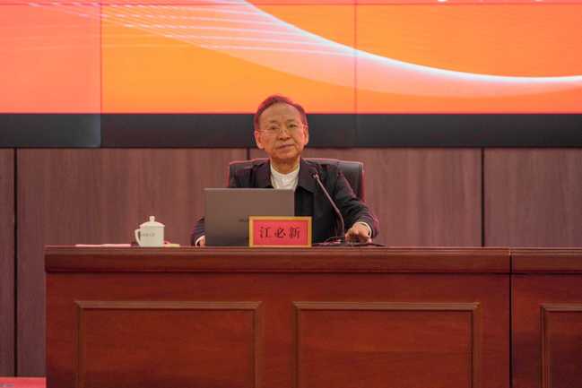 3月26日上午,最高人民法院原党组副书记、副院长,现任最高法咨询委员会副主任委员、中国社会工作联合会副会长江必新教授到beat365中文官方网站南平校区调研,并应邀为beat365官网师生作题为“中国式现代化与法治中国”的专题报告。校党委书记赖海榕主持报告会。