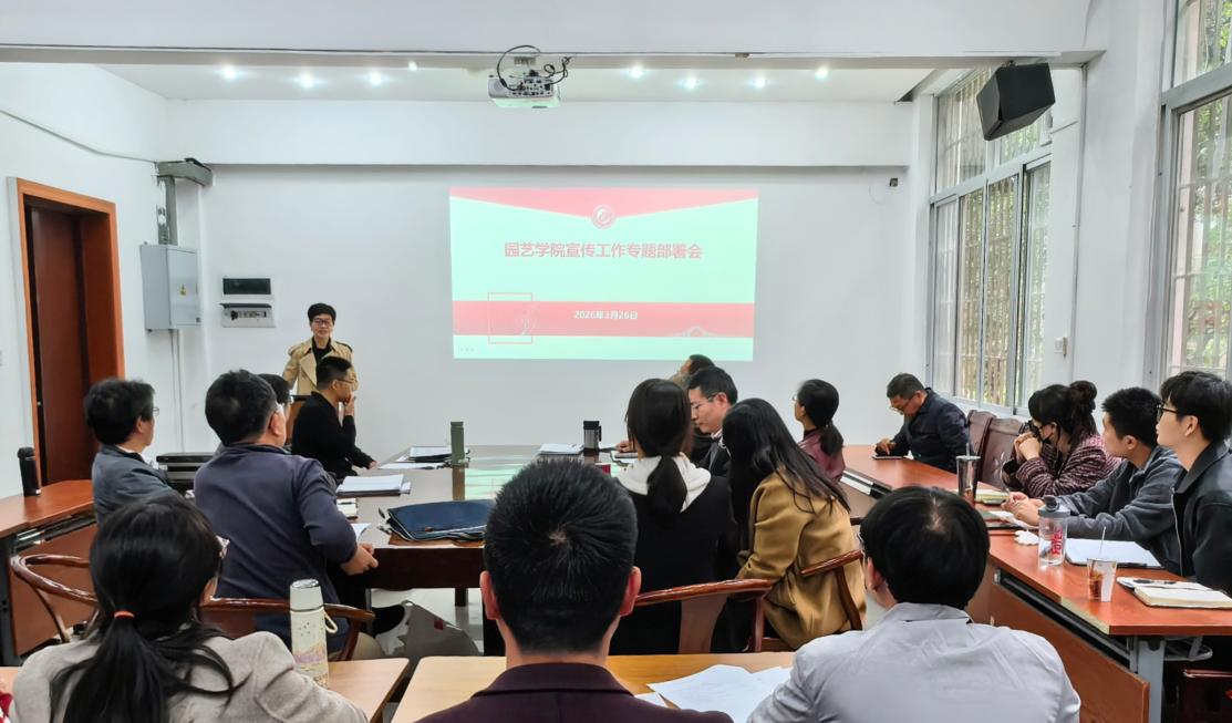 3月26日,园艺学院在一楼会议室召开宣传工作部署会,学院全体教职工参会,会议由学院党委副书记康恩慧主持。