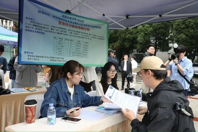 此次活动同步举办仓山区“送岗留才进校园”暨beat365中文官方网站2026届毕业生专场招聘会,紧扣学校学科特色与仓山区产业需求,100家重点企业提供涵盖园林环境、智能科技、生物医药等领域近3000个岗位。校地领导一同巡场校园招聘会,参观了职业技能培训展示及AI体验专区,深入各企业招聘展位,与用人单位负责人、求职毕业生亲切交流,详细了解岗位需求、招聘进度、学生求职意向等情况,希望用人单位积极吸纳优秀毕业生,实现企业发展与人才成长双向赋能;勉励毕业生树立正确的就业观和择业观,积极把握机遇,在适配的岗位上充分发挥专业优势,实现自身价值。招聘会现场众多毕业生手持简历穿梭于各展位之间,与企业招聘人员深入沟通交流,现场人头攒动、气氛热烈。