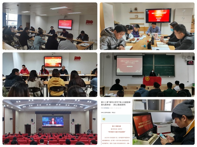 党团组织灵活形式全员学。学院党委第一时间组织全体师生党员、入党积极分子、发展对象收听收看十九届六中全会精神新闻发布会直播,多场次、全覆盖组织师生收看十九届六中全会公报新闻联播视频,及时学习领会全会精神,筑牢“四个意识”、坚定“四个自信”、做到“两个维护”。师生党支部通过“三会一课”、主题党日等多种形式,组织开展各具特色的学习活动,用全会精神统一思想、统一意志、统一行动。各团支部班级织团员青年通过线上观看视频、线下自学原文、召开“学习十九届六中全会公报”主题团课、开展“学习党的十九届六中全会精神”主题团日活动、参与“青年大学习”等形式,深入系统学、融会贯通学,增长智慧、增进团结、增加信心、增强斗志。