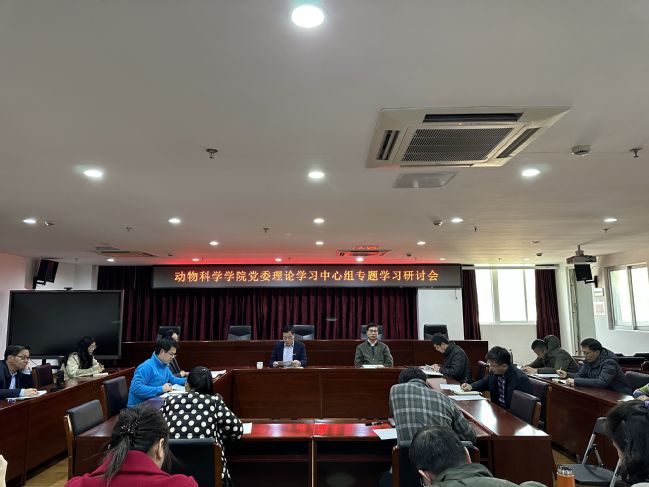 2月23日,动物科学学院党委在学院会议室召开理论学习中心组(扩大)学习会,学习研讨习近平总书记在学习贯彻党的二十大精神研讨班开班式上的重要讲话精神和在二十届中央纪委二次全会上的重要讲话精神。学院党委委员、领导班子成员、党支部书记、各教学系负责人、科级干部、辅导员等参加。会议由学院党委书记陈为德主持。