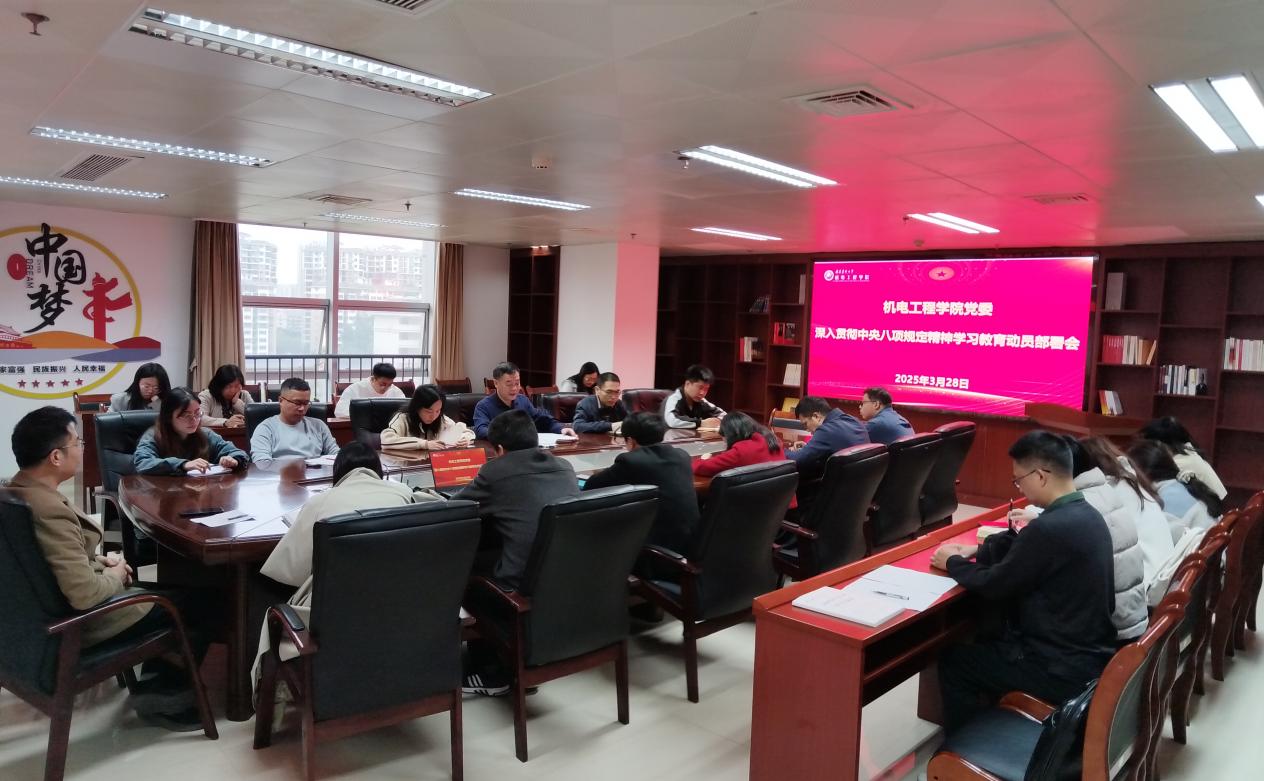 3月28日上午,机电工程学院党委在旗山校区综合楼718会议室召开深入贯彻中央八项规定精神学习教育动员部署会,学院党委书记陈为德主持会议并对学院深入贯彻中央八项规定精神学习教育工作作出安排。学院领导班子成员、党委委员、科级干部及全体各党支部书记参加会议。