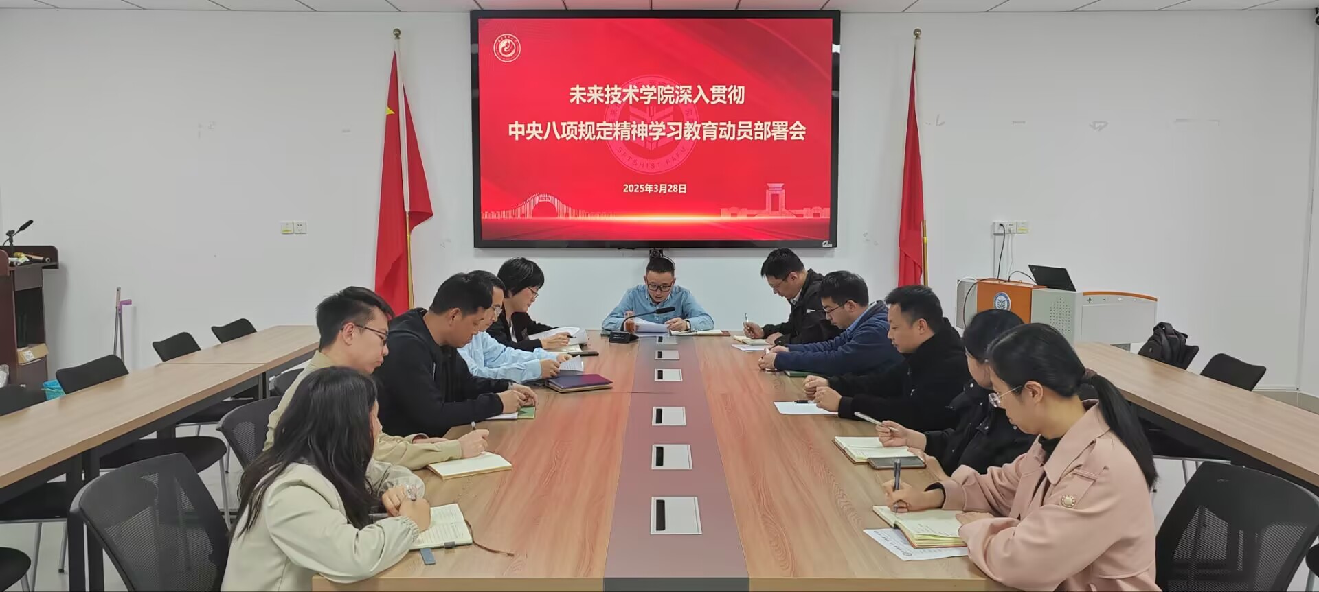 会议学习习近平总书记关于深入贯彻中央八项规定精神学习教育的重要讲话和重要指示精神,传达学习学校动员部署深入贯彻中央八项规定精神学习教育会议精神,研究部署学院开展深入贯彻中央八项规定精神学习教育工作方案。