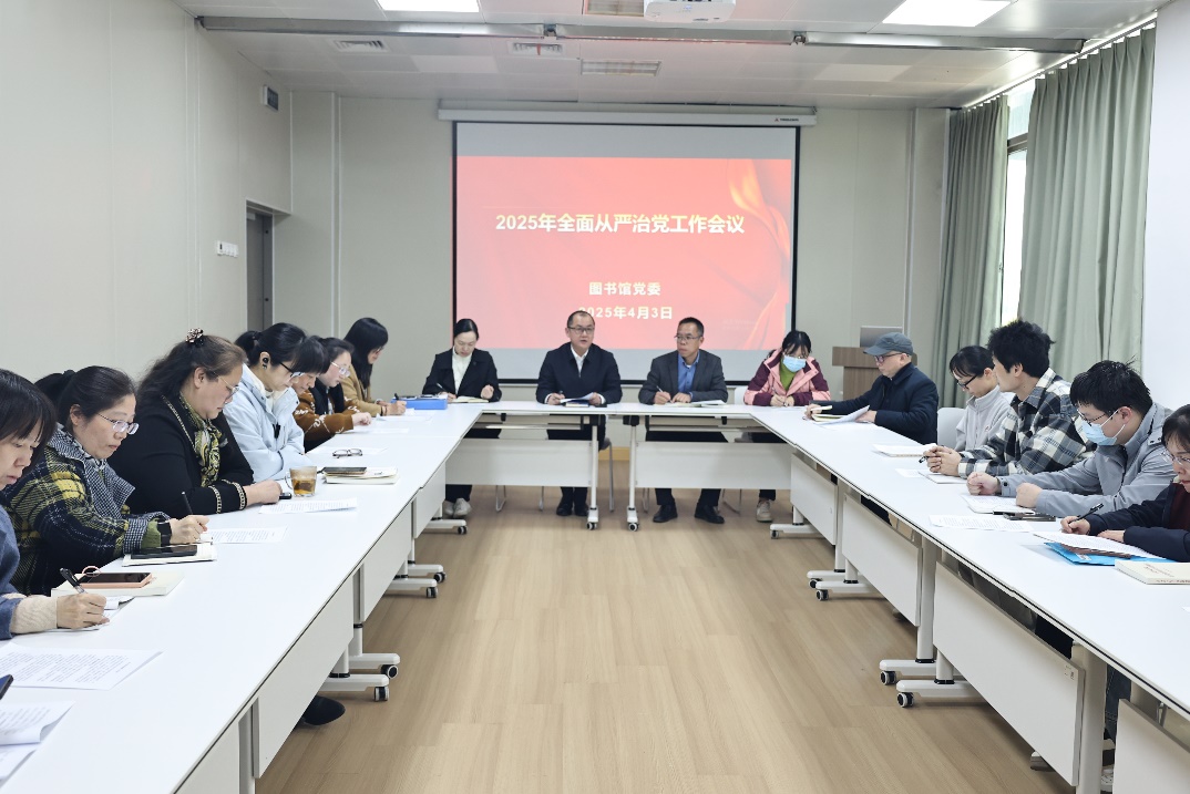 会议传达学校2025年全面从严治党工作会议精神,总结了2024年图书馆党委全面从严治党工作,分析研判当前形势,部署安排2025年重点工作任务。