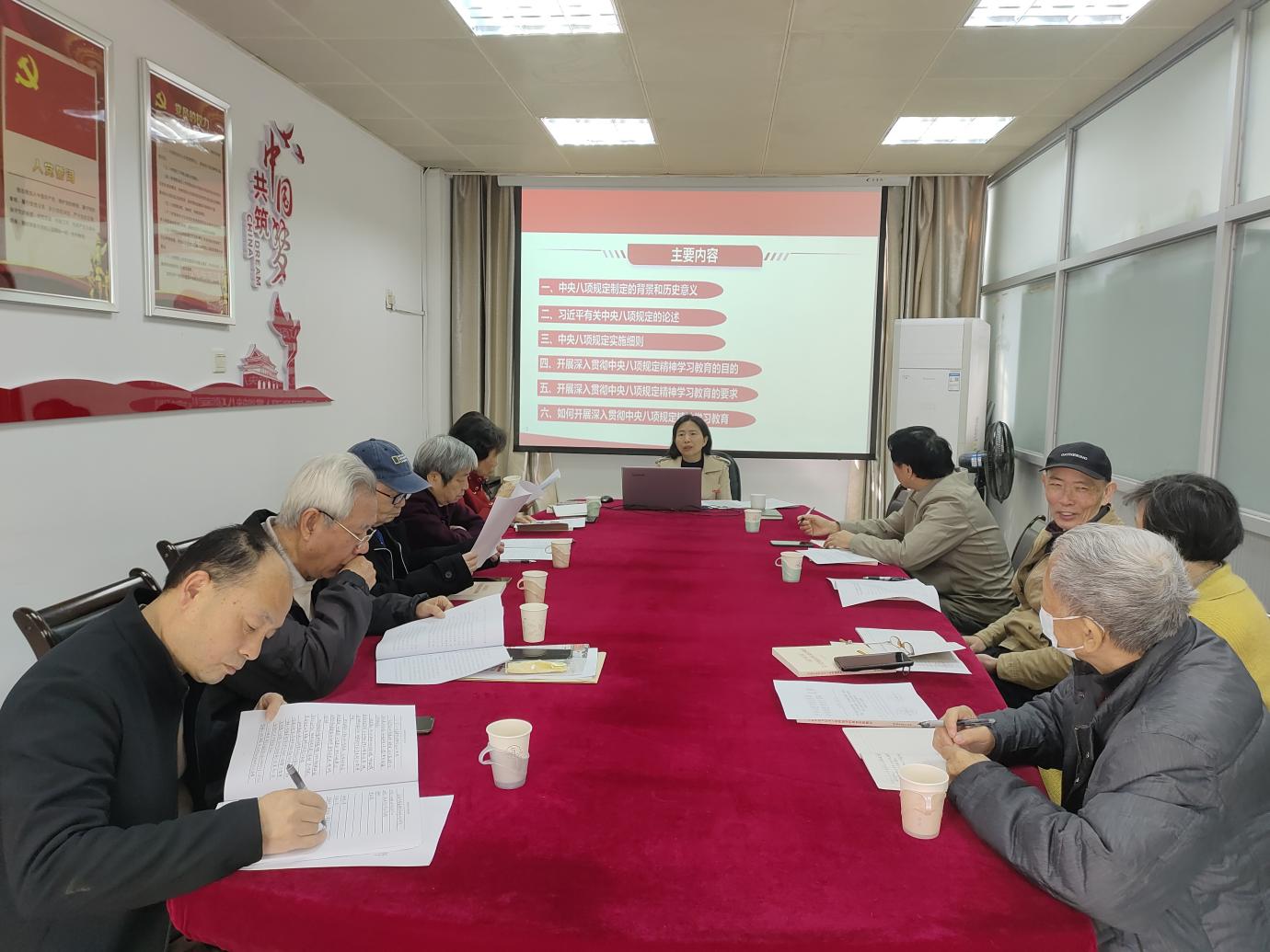 3月28日,离退休党委认真贯彻落实学校深入贯彻中央八项规定精神学习教育动员部署会议精神,正式启动了开展深入贯彻中央八项规定精神学习教育。近日,离退休党委和下属的多个党支部结合自身实际情况陆续开展深入贯彻中央八项规定精神学习教育。