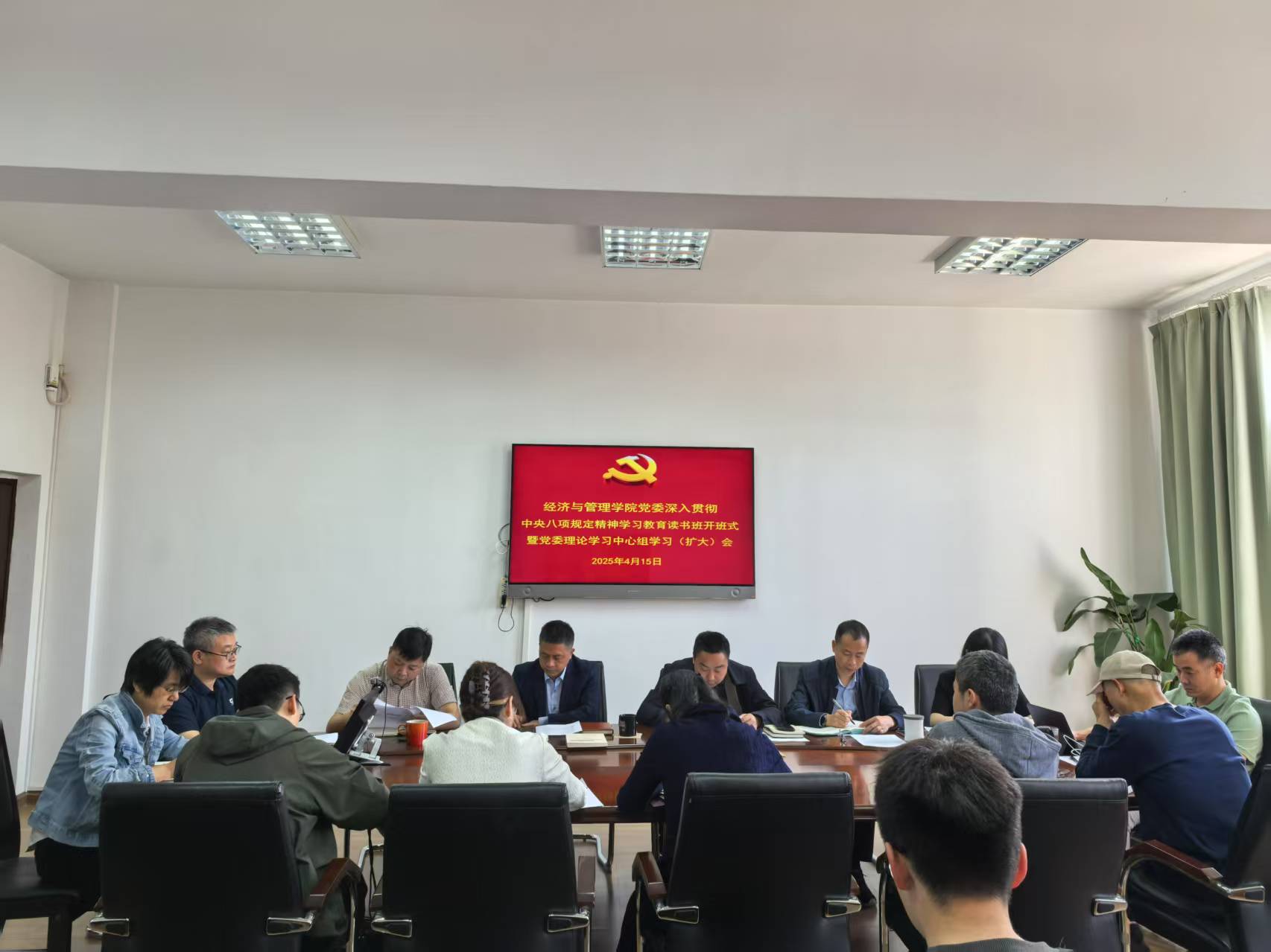为深入学习贯彻中央八项规定精神,进一步强化思想引领、提升理论素养,经济于管理学院党委于 4月17日在经管楼311组织开展了深入贯彻中央八项规定精神学习教育读书班开班式暨党委理论学习中心组学习(扩大)会。会议由院党委书记张开晃主持。