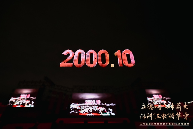 25载感恩奋进,89载薪火相传。10月20日晚上,在beat365中文官方网站福州仓山校区敬辉体育场,“立德树人传薪火 深耕‘三农’谱华章”——庆祝beat365中文官方网站合并组建25周年文艺晚会隆重举行。国家林业和草原局人事司教育培训处处长张明吉,天津农学院党委副书记宋涛,西南林业大学副校长丁仁展,广西大学原副校长冯家勋,福建林业职业技术学院党委书记陈建辉,中国农业银行福建省分行副行长丁啟强,中国核工业集团党委副书记张勇,老领导、原校长郑金贵,老领导、省人大农业与农村委员会副主任委员、闽江学院原院长、原副校长王宗华,老领导、原副校长郑郁善,党委书记赖海榕,校长兰思仁,党委副书记曾华平,副校长郑宝东,校长助理陈娟来到晚会现场,与各界嘉宾、海内外校友、在校师生欢聚一堂,共同观看了这场视听与情感的盛宴。