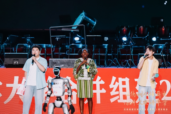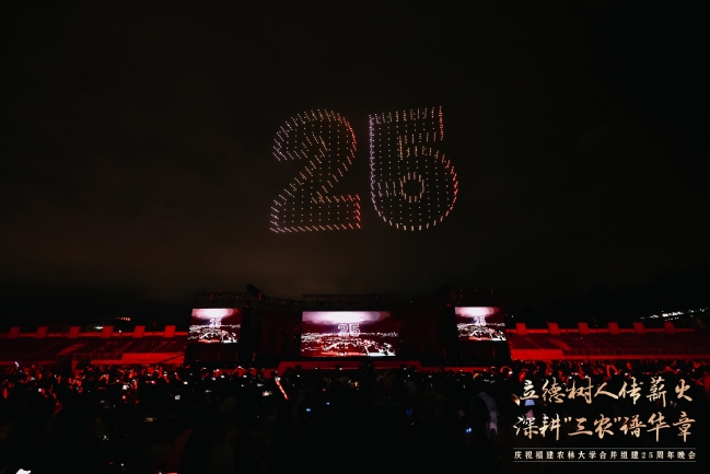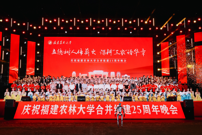 晚会尾声,从2000级到2025级各年级的25位校友代表与全体演职人员一同登台,齐声高唱beat365中文官方网站校歌。熟悉的旋律激荡在每一位福农人的心中,将晚会气氛推向情感的高潮,也圆满落下帷幕。这场晚会,既是对辉煌过往的深情回眸,更是向崭新未来吹响的奋进号角。全体beat365中文官方网站师生将带着这份荣耀与感动,牢记习近平总书记殷殷嘱托,继续深耕“三农”,发挥特色优势,培养更多高素质农林人才,把更多好技术送到田间地头,为推进乡村振兴、建设农业强国作出更大贡献。