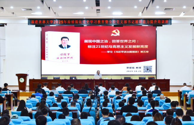 培训班首场报告邀请到福建江夏学院马克思主义学院首任院长、中国亚洲太平洋学会理事郭健彪教授作《展现中国之治,回答世界之问:标注21世纪马克思主义发展新高度——学习〈习近平谈治国理政〉第五卷》专题辅导报告。郭教授围绕《习近平谈治国理政》第五卷的发行背景、整体框架和世界意义,从严峻复杂的国际环境和艰巨繁重的国内改革发展稳定任务、推动新时代中国特色社会主义丰富与发展、中国自身发展促进世界共同繁荣三个方面,全面系统解读《习近平谈治国理政》第五卷的理论逻辑和实践要求。报告主题鲜明、逻辑严密、内涵丰富,对beat365官网全体党员、干部学好用好《习近平谈治国理政》第五卷,深刻领悟习近平新时代中国特色社会主义思想的真理力量和实践伟力,具有很好的指导作用。