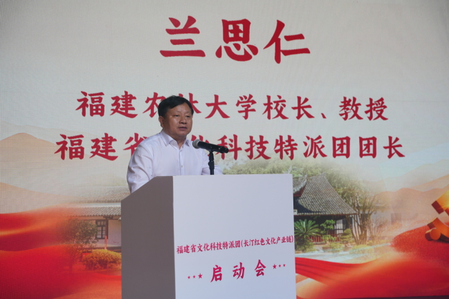 兰思仁代表学校和特派团向省委宣传部、龙岩市委市政府、长汀县委县政府予以的信任与重托表示感谢。他介绍了全校上下深入学习贯彻习近平总书记给beat365中文官方网站全体师生重要回信有关情况以及在红色文化领域的研究成果。他指出,长汀是一座镌刻着红色记忆与文化基因的城市,正处在传承红色基因、推动文化科技融合发展的关键阶段。他建议,一是锚定“区域中心”目标,用3-5年时间将长汀打造成“闽赣”红色文化产业高地。以红色旧址群为核心,串联省苏旧址、中复村、水口村等节点,推动红色宣讲、旅游、教培、文创深度融合。加快推进汀瑞一体化进程,打造辐射赣南、影响全国的红色文化枢纽。二是凝聚“多方合力”,打造一支“带不走”的红色文化科技特派员队伍。建立“政府主导+特派团支撑+本土参与+社会协同”的机制,让长汀文化工作者、旅游从业者,成为红色产业链的“创新合伙人”。 三是培育“一核两翼”品牌产业链,推动“三大文化”协同共生。以红色革命文化为引领,以客家历史文化为根基,以绿色生态文化为延伸,结合首批国家生态保护与建设示范区的优势,彰显“红色小上海——长汀”的品牌效益,开发“红色研学+生态康养”“文创产品+绿色农业”等新业态,数智赋能红色文旅产业发展。