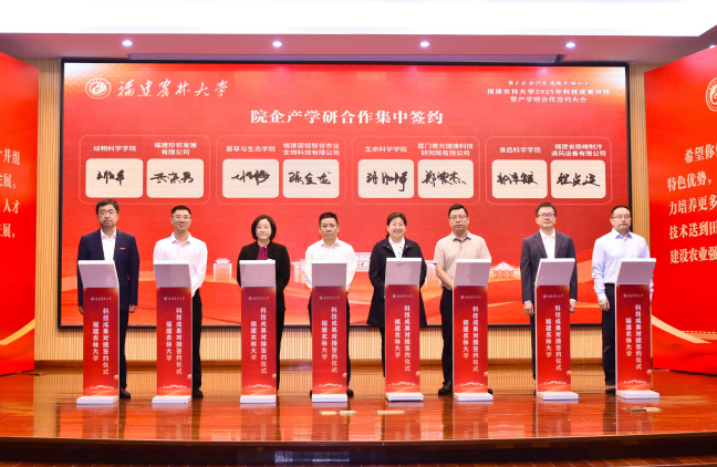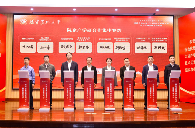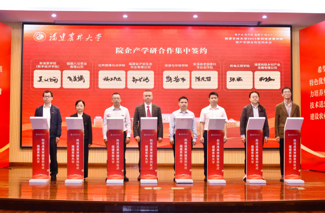 活动现场,还进行了院企产学研合作集中签约。动物科学学院和福建珍农发展有限公司、安溪县富山阁竹业专业合作社,菌草与生态学院和福建菌链智谷农业生物科技有限公司,生命科学学院和厦门君元健康科技研究院有限公司,食品科学学院和福建省鼎峰制冷通风设备有限公司,安溪茶学院(数字经济学院)和福建八马茶业有限公司,公共管理与法学院和福建省沪岩生态农业有限公司,资源与环境学院和安溪县老固茶叶专业合作社,机电工程学院和福建拾联乡村产业发展有限公司、福建省福越日用品制造有限公司,材料工程学院和福人集团有限责任公司,交通与土木工程学院和福建省浦城县九牧产业发展有限公司分别签订产学研合作协议,共同为培养高素质农林人才、服务区域经济社会发展注入强劲动能。
