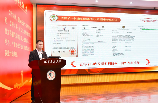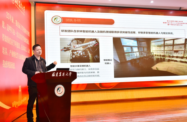 大会集中推介了一批学校在全国有影响力的“单项冠军”级科研成果,其中材料工程学院帅李教授介绍了可替代传统甲醛胶黏剂的木质素基胶黏剂制备与应用,农林人工智能研究院孔祥增教授介绍了代表未来农业发展方向的具身智能机器人,海水养殖生物育种全国重点实验室邵建春教授介绍了闽台特色水产健康养殖系列成果,农林生物安全全国重点实验室吴建国教授介绍了具有重大应用潜力的水稻抗病虫新基因,林学院吴鹏飞教授介绍了全国领先的杉木种质资源,资源与环境学院张博翔教授介绍了养殖废水磷超标、抗生素超标治理技术等,充分展示了学校在农林科技领域的深厚积累与创新能力。近年来,学校主动对接地方产业需求,加速成果转化,在技术攻关和产业孵化上取得明显成效。竹产业创新研究院陈礼辉教授分享了学校服务福建竹产业发展、积极探索农林高校科技助力八闽乡村全面振兴新路的典型经验。
