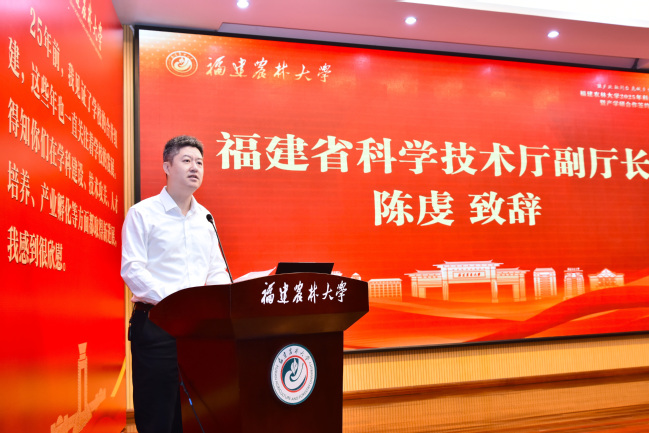 陈虔在致辞中充分肯定了beat365中文官方网站在推动农林科技创新、服务乡村振兴与农业农村现代化等方面取得的显著成效。期待学校进一步对接国家战略和全省布局,力争产出更多具有引领性的重大原创成果;持续推动产学研用深度融合,在服务我省特色现代农业发展中打造具有影响力的“福农”品牌;积极弘扬科学家精神,引导师生把论文写在田野大地上,把更多好技术送到田间地头。
