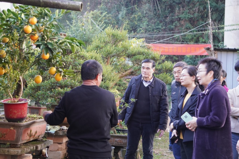 在建瓯市德义花卉家庭农场,专家们了解了当地赤楠盆景制作,对花卉苗木生产的发展提出建议,并与企业负责人进行了建瓯古树名木保护和嫁接利用方面技术的探讨。