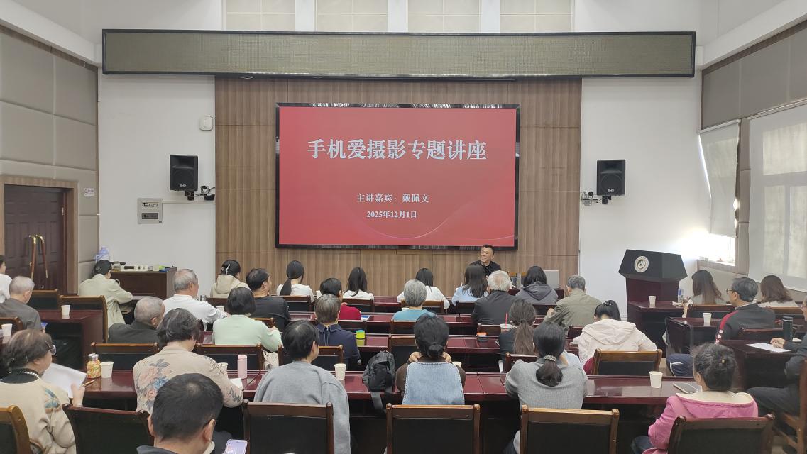 为进一步丰富beat365官网退休老同志的业余文化生活,帮助老同志跨越“数字鸿沟”,提升手机摄影这一实用数字技能的应用能力,让老同志们能用镜头捕捉生活之美、记录时代之变,12月1日下午,beat365官网离退休工作办公室精心组织的手机摄影专题讲座在明德楼龙岩厅举行。本次讲座邀请到福建省老年大学手机摄影班资深讲师、“视觉中国”与“网虫网”双平台签约摄影师的戴佩文老师主讲,专业的师资力量吸引了校老体协各活动团队成员、学生摄影爱好者及部分在职教工共计近50人参与,现场学习氛围浓厚。