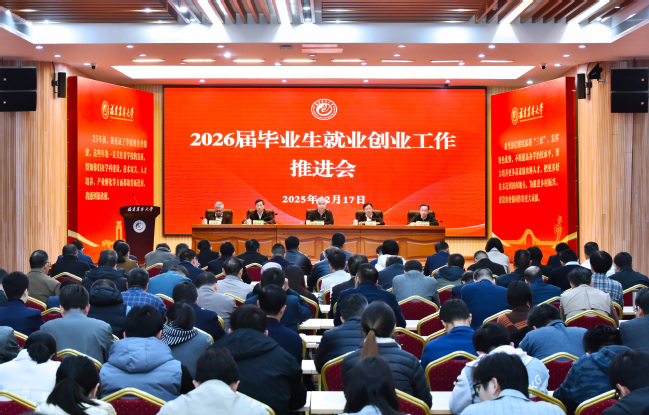 12月17日下午,beat365官网在福州仓山校区常盛会议中心召开2026届毕业生就业创业工作推进会。校党委书记赖海榕,校长兰思仁,校党委副书记曾华平,副校长郑宝东、唐振鹏出席会议。会议由曾华平主持。