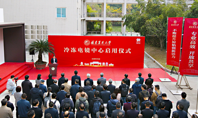 赖海榕在致辞中表示,冷冻电镜中心的启用,标志着学校在重大科研基础设施领域实现了跨越式突破,是学校面向世界科技前沿、服务国家战略需求、坚定不移推进科技自立自强的重要举措。学校将以此平台为依托,坚持立足福建、辐射全国,打造服务区域高质量发展的战略科技力量,为培育新质生产力、建设高水平创新型省份提供坚实的科技支撑;坚持开放共享、协同创新,建设具有国际影响力的前沿科研高地,力争在生命科学、材料科学等重点方向产出一批原创性、标志性的重大成果;坚持育人为本、引领未来,构建高层次科技人才的汇聚与培养平台,在承担重大科研任务中培养造就一批具有国际视野、创新能力突出的学科领军人才和青年科技生力军,为教育强国、农业强国和科技强国建设贡献更多的农林大智慧与力量。