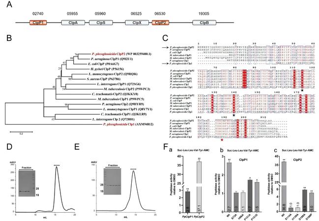 图1. 变形假单胞菌ClpP蛋白酶的鉴定与酶活分析
