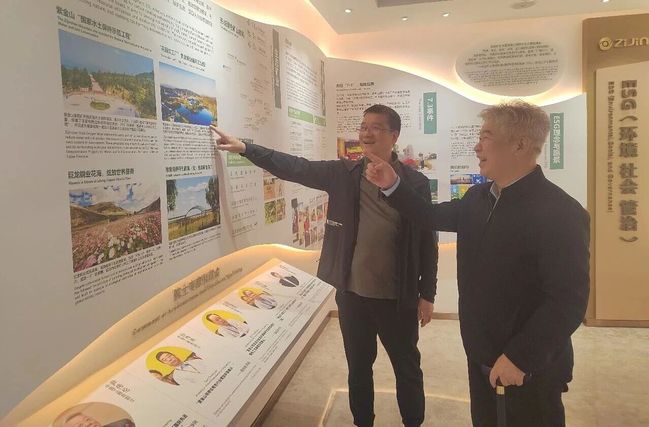 调研期间,赖海榕参观了紫金矿业博物馆,通过珍贵的实物展品和翔实的文献资料等,系统了解了紫金矿业从县属国有小企业成长为全球领先的跨国矿业集团的发展历程,以及在矿产资源勘探开发、绿色矿山建设、生态环境保护、科技创新突破等方面的重大成就。