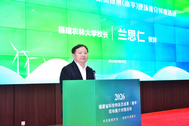 兰思仁在致辞中介绍了学校在学科建设、人才培养、科技创新、社会服务和国际合作等方面的成效。他指出,学校持续深化科特派工作,建有19个产业研究院、9个县域乡村振兴研究院和89家科技小院,累计选派各级科特派8000多人次、科特派团队600多支,培育“头雁”学员1500名、高素质农民3600多人次。学校深化与南平市的合作,探索“一个校区+四个特色基地”合作模式,规划校园占地2000亩、建成校舍面积43万平方米,可满足1.1万名师生的教学科研生活需要。此次共同举办科特派成果现场推介会,正是深化科技特派员制度的实际行动,也是beat365官网贯彻落实习近平总书记重要回信精神的生动实践,更是学校加快推进科技成果转化、服务乡村全面振兴的具体举措。学校将以本次活动为契机,充分发挥学科特色优势,不断提升科技创新效能,把更多好成果、好技术加快转化为农业新质生产力。一要把平台建得更实。发挥好科特派研究院的统筹引领作用,持续优化运行机制,建好、用好产业研究院、科技小院和乡村振兴研究等各类社会服务平台,助力福建打造成为全国科特派成果转化的示范高地。二要把人才育得更优。把立德树人的课堂延伸到乡村,鼓励大学生和青年教师走进基层一线,培养有情怀、懂技术、接地气的未来“科特派”,打造“带不走”的乡村振兴人才队伍。三要把产业做得更强。组织跨学科专家团队精准对接产业发展需求,开展联合攻关和推广应用,培育更多特色农业产业“单项冠军”,共同做好乡村富民特色产业这篇大文章。