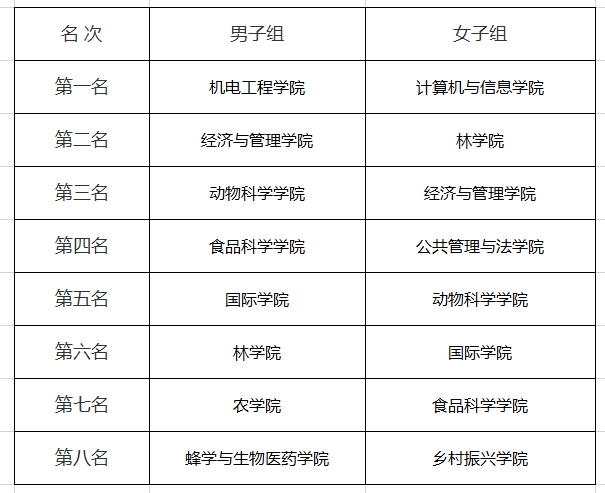 经过两天紧张激烈的比拼,各项目奖项尘埃落定。羽毛球混合团体赛中,动物科学学院代表队一路过关斩将,勇夺桂冠;材料工程学院代表队、生命科学学院代表队分获亚军和季军。乒乓球团体赛方面,机电工程学院代表队、经济与管理学院代表队、动物科学学院代表队斩获男子组前三名;计算机与信息学院代表队、林学院代表队、经济与管理学院代表队分别获得女子组前三名。