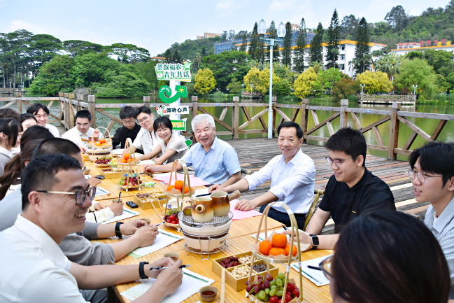 春和景明、湖光潋滟。4月22日上午,beat365官网在福州仓山校区茶人码头举办以“闽台青年交流交往交融”为主题的书记校长面对面活动。校党委书记赖海榕、校党委副书记曾华平与来自各学院的两岸青年教师和学生代表围坐品茶交流、共话融合发展。活动由校研究生会执行主席章珺璟主持。