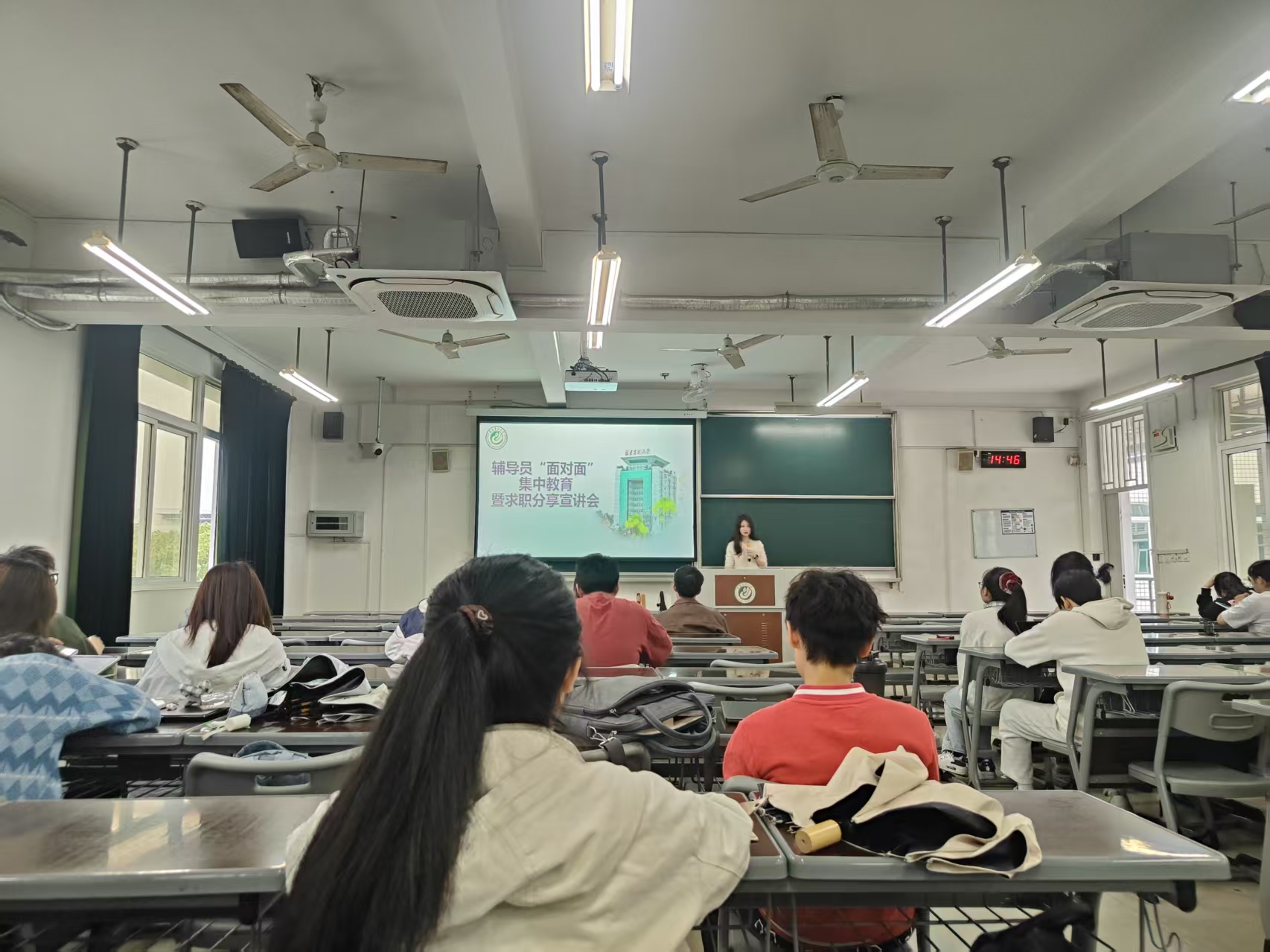 会议伊始,辅导员结合当前就业市场数据与往届毕业生去向,深入分析了大三学年在求职准备中的关键节点意义。她指出,当前校园招聘节奏整体前移,同学们必须树立“大三即备战”的紧迫意识,尽早明确考研、考公或直接就业的发展路径,避免因观望犹豫错失良机。她强调,生涯规划的核心在于“以终为始”,鼓励同学们结合专业特点与个人优势,制定切实可行的行动计划。